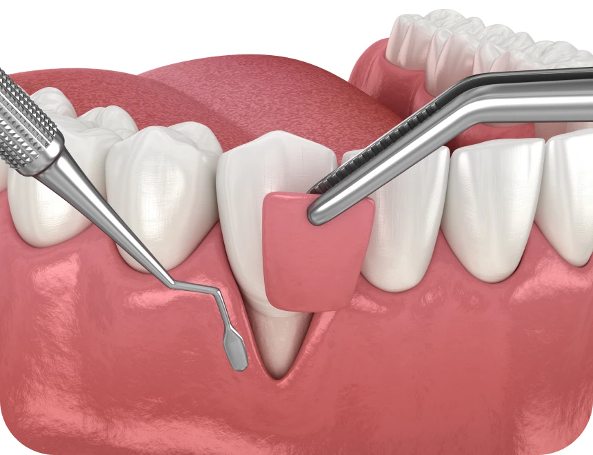 - Greffe gingivale : pour corriger une gencive rétractée ou protéger les racines.