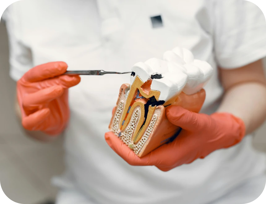 Lorsque la pulpe dentaire est atteinte par une carie profonde, une fissure ou un traumatisme, elle peut s’infecter. Le traitement endodontique consiste alors à retirer cette pulpe, à désinfecter les canaux radiculaires et à les obturer hermétiquement.